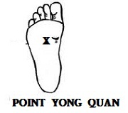 3. MASSER LE POINT de YOUG QUAN (source bouillante ou Gushing spring). Le méridien concerné les reins.
