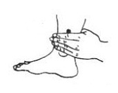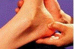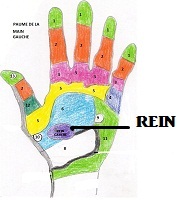 | MAINS Le point réflexe des REINS se trouve surs la dessous (paume) de la main à un angle entre le pouce et le 2ème/3ème doigt |