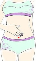 Placez quatre doigts sous le nombril (le méridien de vaisseau conception).