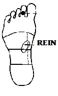 | PIEDS Le point réflexe des REINS se situe juste au dessus, aux centres des pieds. Il dépasse la ligne de la taille en son milieu. |