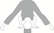 | POSITION DU DÉPART: ETAPE 1: Mettez-vous debout. Prenez la position de la montagne (TADASANE) les mains sur la taille. Écartez bien les jambes de la longueur d’une de vos jambes . Gardez les genoux droit et les orteils légèrement tourné vers l’intérieur; ETAPE 2: Inspirez et à l’expiration fléchissez le torse en avant à partir des hanches. Déposez vos mains sur le tapis, entre les deux pieds ou à l’extérieur de vos chevilles. (ce qui vous est le plus confortable). Idéalement les mains doivent être sur la même ligne que le bout des orteils. Placez le haut du crâne vers le sol. Vous pouvez utiliser un support si c’est plus confortable pour vous. ETAPE 3: Pour SORTIR de la posture, à l’aide des mains soulevez la tête du sol ou du support doucement, d’environ 5 cm et mettez les bras sur la taille. REDRESSEZ le buste en INSPIRANT. DÉCONSEILLÉ FORTEMENT si les muscles adducteurs et les ischio-jambiers (hamstrings) sont serrés |