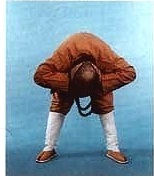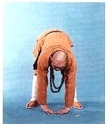 Faites une DEUXIÈME SALUTATION plus bas que le précèdent, déroulez le dos redressez la tête. Faite une TROISIÈME SALUTATION aussi bas que possible